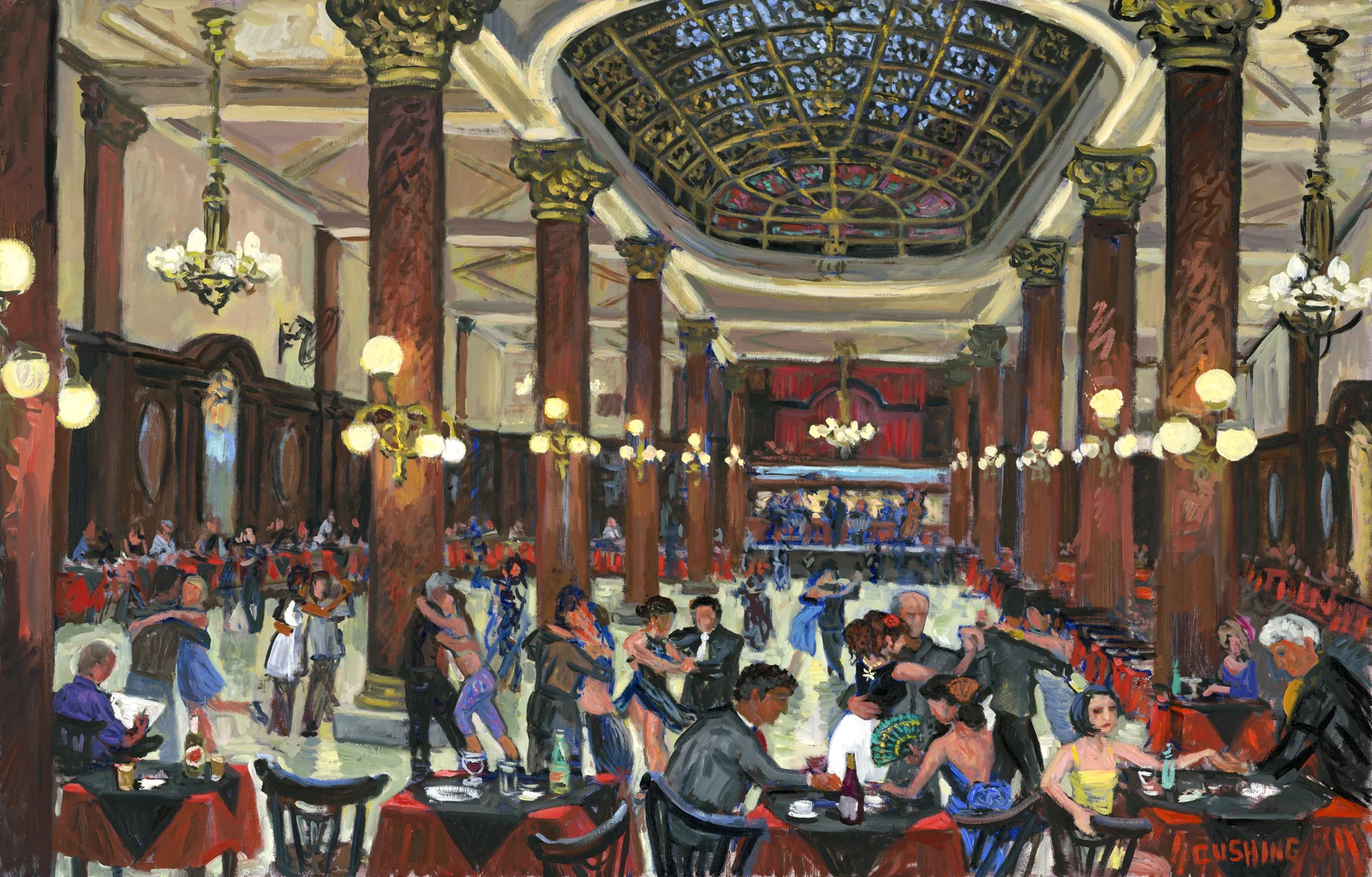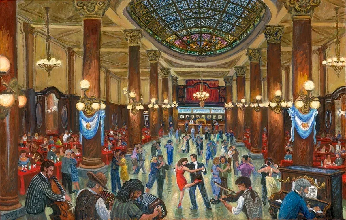 A large painting depicting tango dancers at "Cafeteria de la Ideal" a famous tango venue in Buenos Aires......